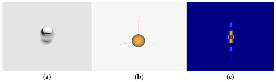 Point-like target: (a) optical image of a metal sphere, (b) the model of an ideal metal sphere, and (c) its ISAR image.