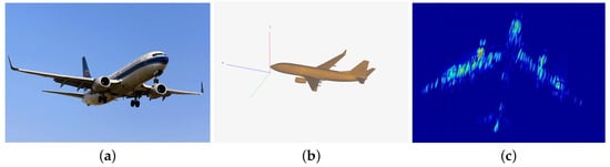 Extended targets: (a) optical image of a Boeing 737 aircraft, (b) the model of an ideal Boeing 737 aircraft, and (c) its ISAR image.