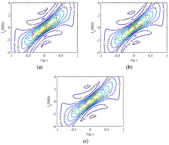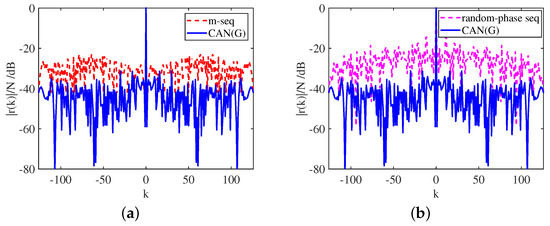 By definition, the cross-correlation function (CCF) is the cross-section of AF at zero Doppler while the peak sidelobe level ratio (PSLR) and integral sidelobe level ratio (ISLR) are often used to reflect the CCF [15]. Among them, PSLR reflects the highest sidelobe level in pulse compression system relative to the mainlobe level, written as