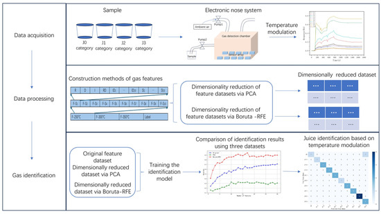 Flowchart of the juice identification approach based on the designed Boruta-RFE algorithm and the E-nose.