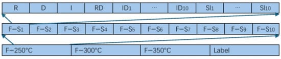 Table 3 lists the features extracted from the response curve of each sensor. A total of 24 features are considered in the current study, and they are sorted according to one-dimensional vectors to construct the feature dataset, as shown in Figure 6. The designed electronic nose contains ten gas sensors, therefore the total count of the extracted features for each sample at each operating temperature is equal to 240 (24 × 10 = 240). And because three operating temperatures (250, 300, and 350 °C) were experimented in the current study, the total number of features extracted from each sample is equal to 720 (240 × 3 = 720).