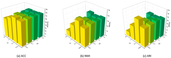 - When both and are less than 0.1, the clustering performances will be worse when is 0.1. On the other hand, when both and are too large, the clustering performances will significantly decline.