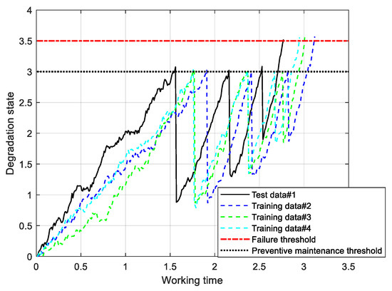 - Zhang, M.; Gaudoin, O.; Xie, M. Degradation-based maintenance decision using stochastic filtering for systems under imperfect maintenance. Eur. J. Oper. Res. 2015, 245, 531–541. [Google Scholar] [CrossRef]