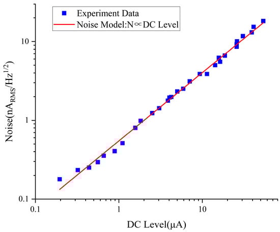 The noise power spectrum of the D1 laser is shown in Figure 11. The noise is linearly related to the DC current of the laser and has a significant impact on sensitivity. The loop noise composed of OCXO noise, DDS noise, preamplifier, and lock-in amplifier in the electronic system is not further experimentally analyzed in this paper.