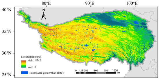Surface water, as an essential component of the hydrological cycle, plays a critical role in maintaining the balance of water resources and the environment [1,2]. The Tibetan Plateau, often referred to as the “Water Tower of Asia”, not only accounts for more than half of China’s total number of lakes but also serves as the source for many major rivers [3]. The abundant water resources and unique ecosystems on the Plateau give rise to a complex and diverse hydrological cycle within a fragile ecological system [4]. However, the surface water resources of the Tibetan Plateau are highly sensitive to both regional and global climate change, making them crucial indicators of climatic and environmental shifts. Particularly under the backdrop of global warming, the rate of warming on the Tibetan Plateau is twice the global average, accelerating glacier melt and permafrost degradation. This process has disrupted the balance of surface water and increased the frequency of natural disasters such as ice avalanches and glacial lake outburst floods [5,6,7,8,9,10]. Therefore, monitoring the spatiotemporal variations in surface water on the Tibetan Plateau is vital for enhancing our understanding of climate change, aiding in disaster prevention, and supporting more effective management of surface water resources [11].