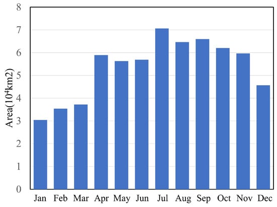 A comparative analysis was conducted between the water body abundance map from 2017 and water body area data derived from other datasets collected during the same period, including GSWED, JRC, and CWaC water body products. As illustrated in Figure 4, it can be observed that the water body area indicated by the abundance map gradually increases from a relatively low value at the beginning of the year, reaching a peak in July, followed by a gradual decline.