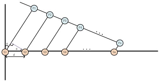 Then, we will calculate the half-power beamwidth (HPBW) of the Tx by considering it as an antenna array with a 16 × 16 array. According to the basic theory of electromagnetic field, we first consider the case that the transmit antenna is N oscillators arranged in a straight line, as shown in Figure 8 below, each oscillator is the same, so the resulting pattern of the array is the product of the element pattern and the array factor pattern.