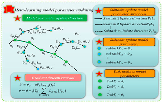 The training process of the inner and outer layers of MAML model parameters is shown in Figure 6. In the inner loop structure, the parameter updating process of MAML is as shown in Equation (21):