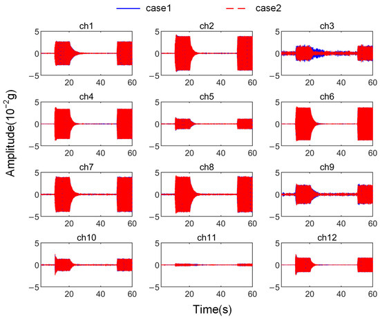 In the experiment, the situation where all channels are controlled is was referred to as Case 1, and the situation where only one channel is controlled is was referred to as Case 2. The time-domain signal changes corresponding to all channels in both cases are shown in Figure 15.