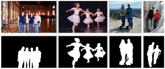 Organization of Open-Source Datasets: The first step was to aggregate data from various open-source web datasets, selecting images that represented a broad spectrum of demographics, backgrounds, and scenarios. Acknowledging the limitations of these datasets, particularly in multi-subject scenes and complex backgrounds, we strategically augmented our collection with an additional 100 images, referred to as MulData [21,22,23,24,25,26,27]. These images were specifically chosen to fill gaps and ensure comprehensive representation of various portrait settings. Furthermore, to enhance the dataset for video applications, we added 2000 unique non-human background images to provide a richer variety of environmental contexts.