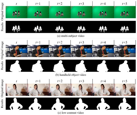 Video portrait segmentation is the process of accurately distinguishing between foreground and background regions in video frames [1]. It plays a crucial role in diverse applications, including human-computer interaction, augmented reality (AR), video editing, autonomous navigation, and video surveillance. The exponential growth in video content has increased the demand for advanced segmentation technologies that can deliver both high accuracy and computational efficiency in dynamic scenarios [2,3]. However, achieving reliable segmentation in video sequences is challenging due to factors such as temporal variations, occlusions, deformations, and the need for real-time processing in resource-constrained environments.