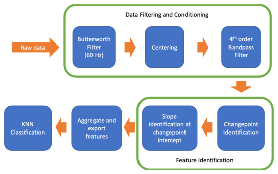 A block diagram of the KNN raw data processing pipeline. The raw data consisted of 6 channels of 5 trials.