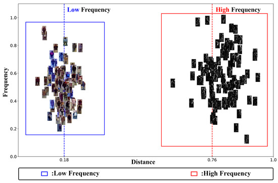 In recent years, frequency domain feature learning has shown great potential in various tasks such as image dehazing [9], image restoration [10], and low-light image enhancement [11]. Unlike spatial domain features, frequency information derives from the intrinsic physical properties of the image. Techniques such as wavelet transform are particularly effective in this context. As illustrated in Figure 1c, high-frequency images obtained through wavelet transform contain more texture details, noise, and sharper edge information. In contrast, low-frequency images capture stable global information, such as color and global structural information. Specifically, low-frequency wavelets capture global content, whereas high-frequency wavelets capture edge details. In Figure 2, we also illustrate the distances between the original image and its high- and low-frequency components. There is a clear distinction between frequency and spatial-domain information, with the high-frequency components demonstrating more discriminative features. Therefore, leveraging frequency-domain information and the strengths of both high- and low-frequency features is important for reducing modality gaps in VI-ReID tasks.