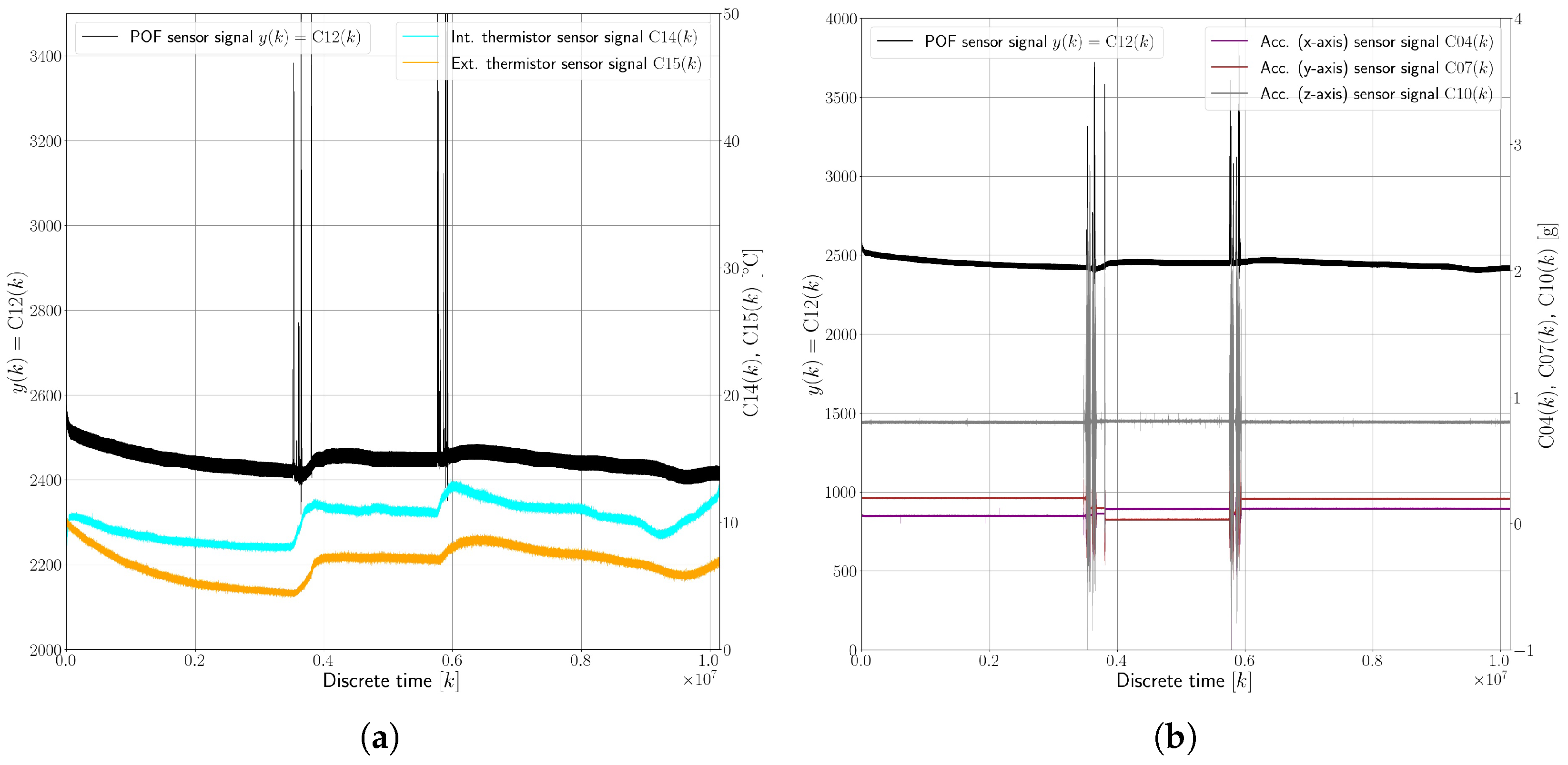 The data processing strategy for detecting relevant faults is outlined in Figure 3. This strategy involves collecting data from various sensors, including a POF sensor, a 3-axis accelerometer, and both internal and external thermistors.