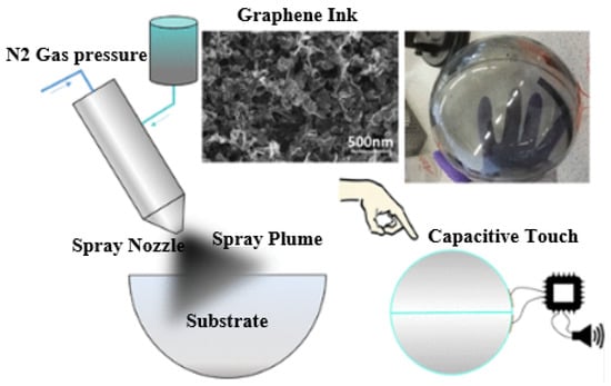 - Carey, T.; Jones, C.; Le Moal, F.; Deganello, D.; Torrisi, F. Spray-Coating Thin Films on Three-Dimensional Surfaces for a Semitransparent Capacitive-Touch Device. ACS Appl. Mater. Interfaces 2018, 10, 19948–19956. [Google Scholar] [CrossRef]