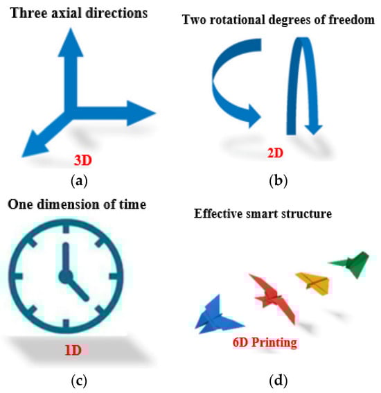 1D to 6D printing method in the visual (a–d): dimensionality clarification [,].