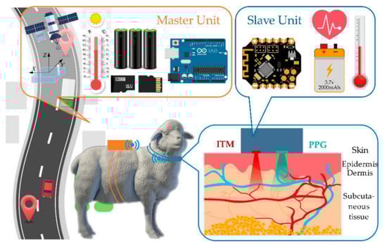 - Cui, Y.; Zhang, M.; Li, J.; Luo, H.; Zhang, X.; Fu, Z. WSMS: Wearable Stress Monitoring System based on IoT Multi-Sensor Platform for Living Sheep Transportation. Electronics 2019, 8, 441. [Google Scholar] [CrossRef]