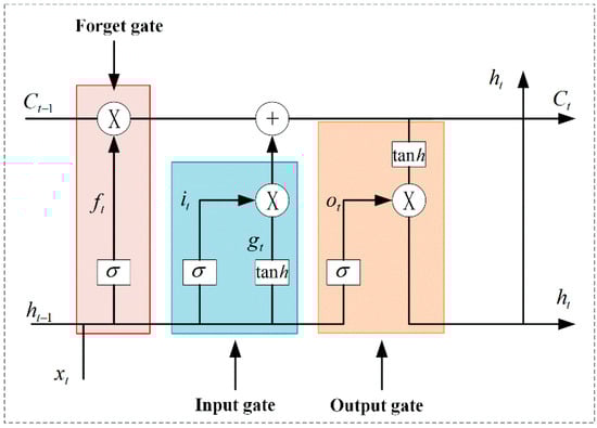 Castaneda-Miranda et al. [73] used a multi-layer perceptron artificial neural network (ANN) to prevent frost in intelligent greenhouses. The system’s parameters include wind speed, the relative humidity of the outdoor air, total solar radiation flux, and the relative humidity of the inside air. Its temperature forecast accuracy can approach 95%. Fourati [74] used an Elman neural network to model the greenhouse environment to achieve multi-neural control of the greenhouse and improve the greenhouse environment climate. Jung et al. [75] designed a data-based tomato greenhouse evapotranspiration (ET) and humidity deep learning model for the issue of crop humidity change and crop transpiration prediction in greenhouses. The test dataset was used for humidity prediction. The prediction results were compared with the prediction results of the traditional Recurrent Neural Network–Long Short-Term Memory (RNN-LSTM) model, and the experiments showed that the model had better prediction performance. The Long Short-Term Memory (LSTM) neural network is shown in Figure 6. Liu et al. [76] proposed the Google Cloud Platform–Long Short-Term Memory (GCP-LSTM) model for greenhouse climate prediction, which can reliably forecast greenhouse climate. Mounir et al. [77] predicted the ventilation volume in the greenhouse through the RNN-LSTM model, and guided the opening degree of the vent according to the size of the air volume. Wu et al. [78] used a neural network to compensate the error of the temperature and humidity sensor, and the detection accuracy of the sensor was improved. The particle swarm optimization (PSO), Back Propagation (BP) neural network, and PID control algorithm were combined to construct the PSO-BP-PID control algorithm. The algorithm was used to control the temperature and humidity, which improved the response speed of the greenhouse system and reduced the overshoot. It was able to control the temperature and humidity in the greenhouse more accurately. Belhaj [79] introduced a deep learning algorithm on an Elman neural network to form a deep multi-layer perceptron (MLP) neural network to control the greenhouse internal climate.