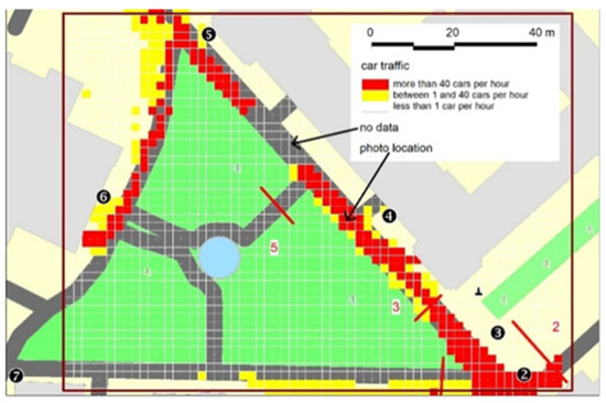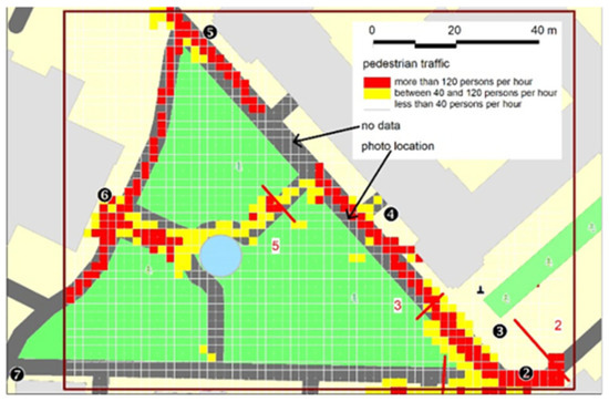 The way in which the physical space of a city is shaped, i.e., its morphology, has a significant impact on the movement characteristics of its users [7] and, consequently, on the efficiency of the use of a specific space, including ensuring the comfort of its users. Research in this area shows how relatively small changes in the designed layout of streets or the location of buildings can affect the intensity of pedestrian and vehicular traffic, both in typical urban spaces as well as in specific ones, such as university campuses [8]. Any flow analysis requires validated and sufficiently precise input data. Such data are constantly being collected by the numerous IoT sensor networks installed in cities [9]. Appropriate acquisition, processing, interpretation, and implementation of the results in the process of architectural and urban design is an important research topic and this paper focuses on its selected aspects.