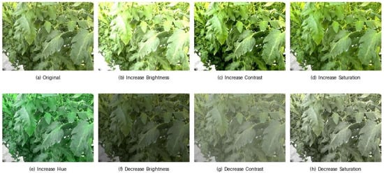 Augmented variants of dataset images using brightness, contrast, hue, and saturation adjustments.