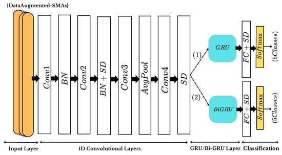 - Novel Hybrid Architectures: We combine shallow CNN, GRU, and Bi-GRU to design two architectures that effectively preserve spatial and temporal feature extraction and improve the decoding robustness of the five-class motor imagery data.