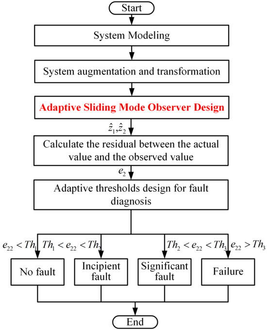 Based on the adaptive SMO designed above, incorporating the fault excitation signal is utilized to construct the fault detection variable. According to (11), can be calculated, and the expression of is given as follows:
