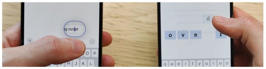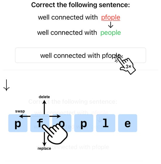 - Li, Y.; Sarcar, S.; Kim, S.; Ren, X. Swap: A replacement-based text revision technique for mobile devices. In Proceedings of the ACM SIGCHI Conference on Human Factors in Computing Systems—CHI ’20, Honolulu, HI, USA, 25–30 April 2020; ACM: New York, NY, USA, 2020; pp. 1–12. [Google Scholar] [CrossRef]