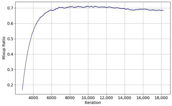 Previous studies mostly used a fixed or randomized approach when assigning values to mixup ratios [33,34,35]. This approach provides modest data augmentation and is difficult to adapt to the diverse data requirements of the model at different training stages. In the SSDA-OD task, the model requires more source data and labeled target data in the early training stage. This ensures training stability and helps the model learn key underlying features and patterns accurately. However, as training advances, the model’s generalization ability increases, and more unlabeled target data are needed to improve target domain performance and reduce bias to the source domain and the overfitting of labeled target data.