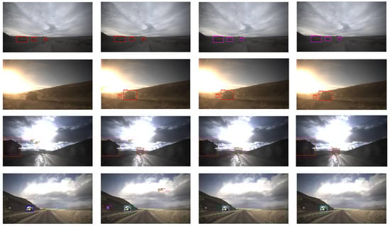 In this study, we employed the faster R-CNN object detection model [36] with a VGG16 backbone, implementing all code using the Detectron2 framework. The training was conducted on two 4090D GPUs. The key hyperparameters were configured as follows: , , and . Following the settings of the adaptive teacher method [13], we optimized the network using stochastic gradient descent (SGD) with a learning rate of 0.04 and a decay rate of . To ensure a fair comparison with the experimental results reported in [9], we maintained the same batch size across the source domain, labeled target domain, and unlabeled target domain, setting it to 4 for each.