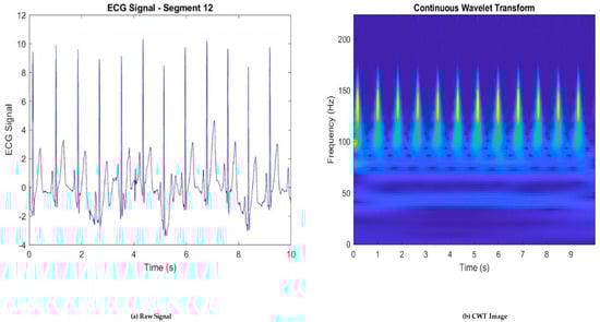Continuous Wavelet Transform (CWT): The CWT is applied to the preprocessed ECG signal to obtain a time–frequency representation. The Morse Wavelet is often chosen for this purpose due to its superior time–frequency localization and robustness to noise. CWT provides a detailed view of the signal’s frequency content over time, making it easier to identify the QRS complex.