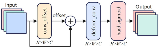 Next, the ARM applies deformable convolution using the generated offset , refining the feature maps to focus on discriminative regions while adjusting spatial locations. This process is mathematically expressed as follows: