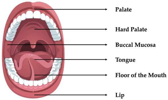 Oral cancer ranks sixth globally in terms of cancer incidence. Almost 90% of such cancers are oral squamous cell carcinomas (OSCCs) [1]. This is the most prevalent malignant tumor that develops in the oral cavity, starting at the lips and ending at the anterior surface, and is usually lined by squamous cell epithelia with minor salivary gland involvement [2]. The main factors contributing to OSCC are tobacco, betel quid, alcohol consumption, and a sexually transmitted virus called human papillomavirus (HPV) [3]. Typical symptoms include red or white patches on the tongue, ulcers, unusual bleeding, neck swelling, or a lump [4]. Oral cancer affects various areas within the oral cavity, including the lips, tongue (particularly the sides and dorsal surface), floor of the mouth, buccal mucosa (inner lining of cheeks), palate (hard and soft), gums and gingiva, oropharynx (base of the tongue, tonsils, and soft palate), and retromolar trigone (the area behind the last molar teeth on the lower jaw) [5], as shown in Figure 1.