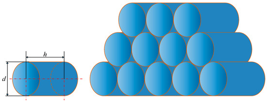 Coil workpieces [1] are goods consisting of steel wire wound into coils, typically enveloped in a protective casing; thus, they can be likened to a cylindrical body, as shown in Figure 5. Here, represents the diameter of the coil and denotes the height or thickness of the coil.