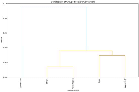 Dendrogram showing the correlation distance between features in different anatomical regions averaged across all trials. The “Others” category contains features that cannot be clearly assigned to specific anatomical regions or sensor modalities. These include whole-body metrics (e.g., center of mass (CoM) measures). The inclusion of “Others” ensures that the analysis captures all potentially relevant feature interrelationships.