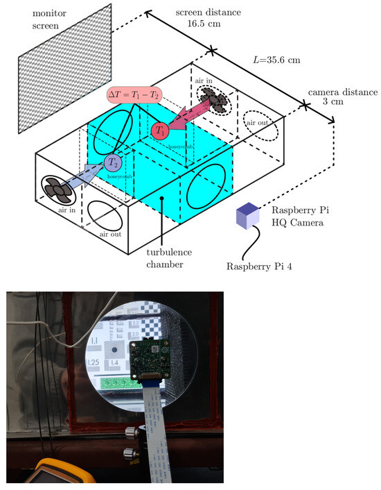 - Raspberry Pi High-Quality Camera module (Sony IMX477R stacked back-illuminated sensor, 12.3 megapixels, 7.9 mm sensor diagonal, 1.55 µm × 1.55 µm pixel size). The sensor module was located 3 cm away from turbulator window, as shown in Figure 1.