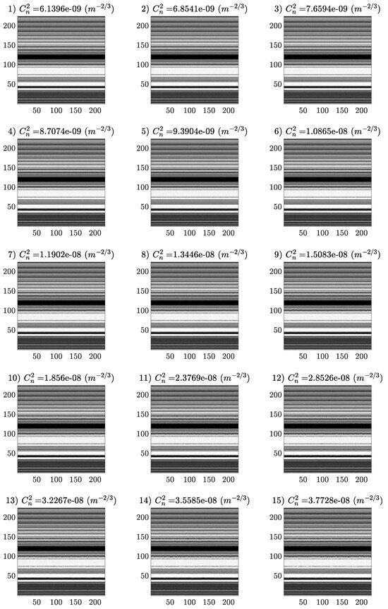 Considering practical scenarios such as free-space laser communications, it is possible to implement this method by simply observing a static target. This approach will be addressed in future work as it requires previous extensive laboratory training of this model in terms of , where is the propagation distance [29]. Future efforts will focus on the enhancement of lower turbulence intensities for this methodology, the incorporation of color information, analyzing evolving image sequences, and determining the minimum capture duration required for optimal performance.