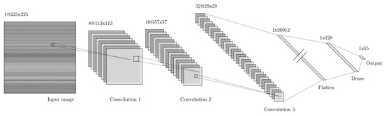The CNN model was implemented in Keras [35], a widely used deep learning library. The architecture (see Figure 5) is outlined as follows: