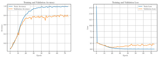 We conducted an analysis of the training performance of our model by monitoring key metrics such as accuracy and loss throughout the training process (Figure 7). To gain insights into the model’s learning dynamics and generalization capabilities, we plotted the accuracy and loss for both the training and validation datasets versus epochs. These plots provide a comprehensive view of the model’s performance over time, allowing us to observe how it evolves and adapts to the training data while also assessing its ability to generalize to unseen data.
