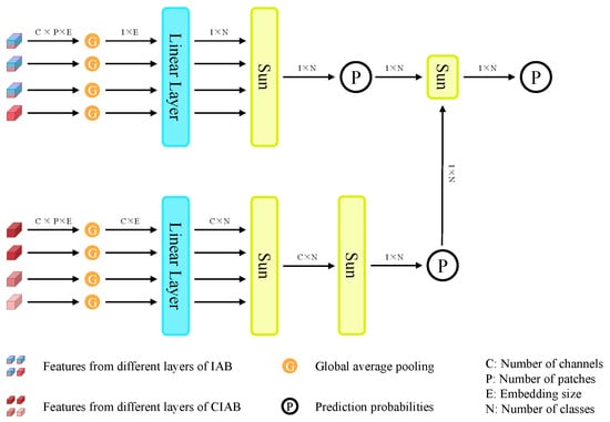 In the Multiscale Classification Head (MCH), the output from the MDBA is received. Different processing methods are applied to the outputs from the IAB and CIAB, as illustrated in Figure 6.