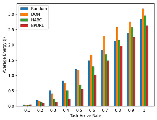 Comparison of average energy under different task arrival rates.