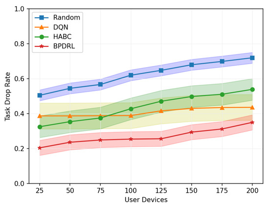 Comparison of task drop rates under different user devices.