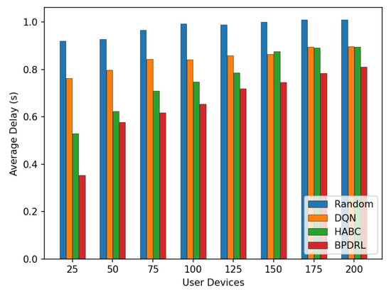 Comparison of average delay under different user devices.