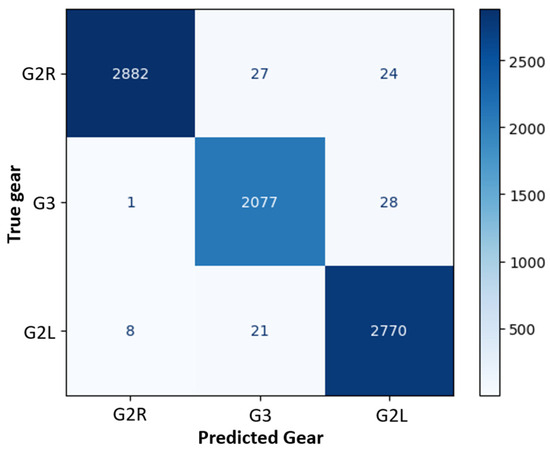 Confusion matrix for gear classification using only inertial sensors (AGM configuration).