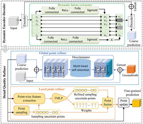 - DQRNet introduces a detail quality refiner to enhance the predictions, which consists of global point refiner and local point refiner. The global refiner employs a discriminator based on multi-head self-attention to update global information. The local refiner combines the pre- and post-judgments by weighted fusion, which helps to refine the details at the boundaries.