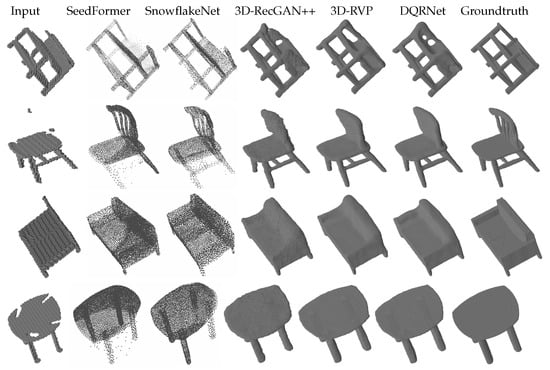 - Zhou, H.; Cao, Y.; Chu, W.; Zhu, J.; Lu, T.; Tai, Y.; Wang, C. SeedFormer: Patch Seeds Based Point Cloud Completion with Upsample Transformer. In Proceedings of the European Conferenceon Computer Vision (ECCV), Tel Aviv, Israel, 23–27 October 2022; pp. 416–432. [Google Scholar]