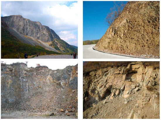 - Siddique, T.; Pradhan, S.P.; Vishal, V.; Mondal, M.; Singh, T. Stability assessment of Himalayan road cut slopes along National Highway 58, India. Environ. Earth Sci. 2017, 76, 759. [Google Scholar] [CrossRef]