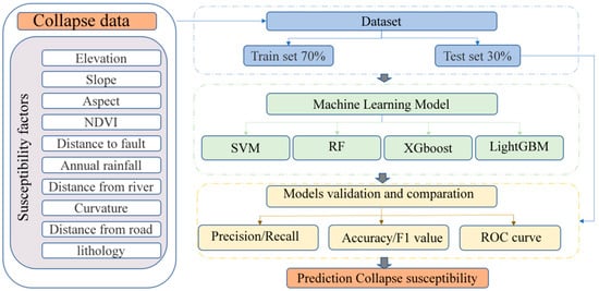 In recent years, the assessment of collapse hazards has gained increasing prominence within the field of geological disaster prevention [1,2]. Although progress has been made in understanding the mechanisms behind collapse formation, a further in-depth exploration of the complex causative processes remains essential. Machine learning technologies have demonstrated considerable potential in analyzing various nonlinear factors, such as geology, topography, and rainfall, and have been extensively applied in collapse hazard assessment [3]. However, existing machine learning models generally lack interpretability, which limits the deeper understanding of the relationships between collapse-triggering factors over large areas, thereby undermining the transparency and credibility of model predictions.