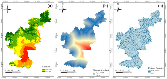 Distance to Faults: Areas near fault zones experience intense geological activity, resulting in more pronounced rock fragmentation and relatively poorer stability [30].