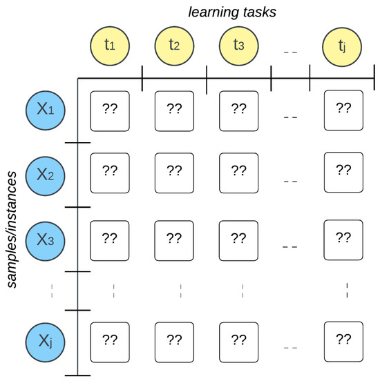 Let {, ⋯, } be a set of T learning tasks in a multi-task active learning setting. Furthermore, let = {(, ), (, ), ⋯, (, )} be the training set of size n for task . Note that the input observations are shared across all the tasks. Each input observation is a D-dimensional vector of form = [, , ⋯, ], which yields as the feature set or raw sensor data and as the target vector for task . Similarly, the unlabeled pool contains m samples, where each sample is also a D-dimensional input. The target vector is an vector unknown to us.