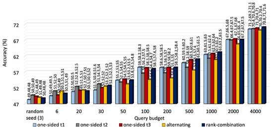 Comparing the average accuracy (%) of different approaches at multiple query budgets on DEAP dataset. The highest accuracy values are highlighted in bold.
